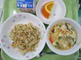牛乳 にんじんごはん 鮭のチーズ焼き 卵スープ