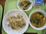 牛乳 とりめし ひじき入りサラダ みそ汁