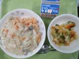 牛乳 きのこのクリームソースライス カリカリ油揚げのサラダ