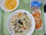 牛乳 洋風卵とじうどん じゃがいものチーズ焼き フルーツポンチ