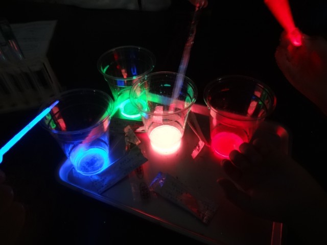 27日(月)の科学クラブでは、「光る水づくり」に挑戦しました。
