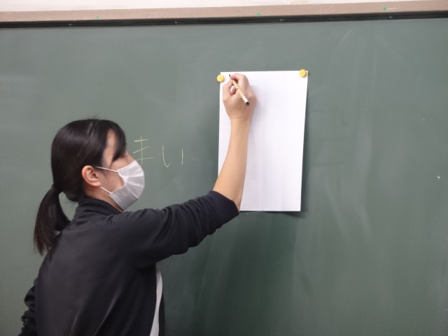 小筆で名前を書く練習では、「思ったよりむずかしいけど、きれいに書けるとうれしい!」と、できた文字を見せ合いながら達成感を味わっていました。筆を通して、文字の形や書くことの楽しさを味わう時間となりました。