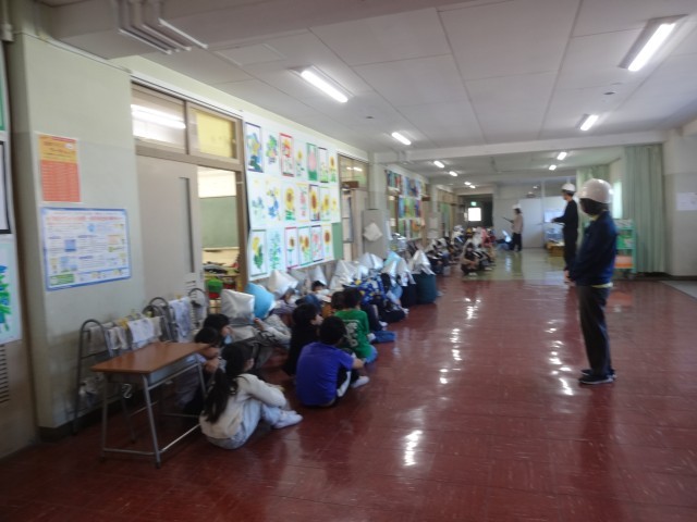 また、当日はインフルエンザなどの感染症が流行していたため、校庭に集まらず、廊下での避難までで訓練を行いました。状況に応じて行動を変える大切さについても、子どもたちはしっかり理解して参加することができました。