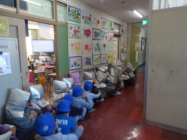子どもたちは放送をよく聞いて、近くの安全な場所を確認しながら、落ち着いて廊下まで避難することができました。姿勢を低くしたり、友達同士で声をかけ合ったりする姿も見られ、自分の身を守ろうとする意識の高まりを感じました。