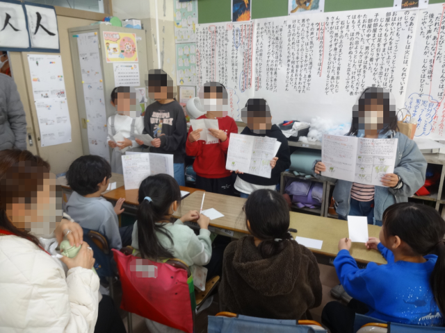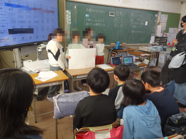 子どもたちにとって今回の発表は、翌週から始まる「大根ウィーク」に向けて、調べたことを分かりやすく伝えるための大切な練習の場でもありました。相手の反応を見ながら話したり、説明の仕方を工夫したりする姿が見られました。