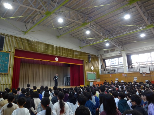 校長先生からは、今年の箱根駅伝の話がありました。選手たちが目標に向かって努力を積み重ね、当日までの体調管理や仲間とたすきをつないで走り抜く姿を通して、毎日の積み重ねや最後まであきらめない気持ちの大切さについてお話がありました。