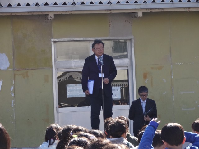 続いて行われた始業式では、校長先生から新年度に向けた話がありました。「友達大好き」「先生大好き」「学校大好き」を合言葉に、一日一日を大切に過ごして欲しいというメッセージが伝えられました。