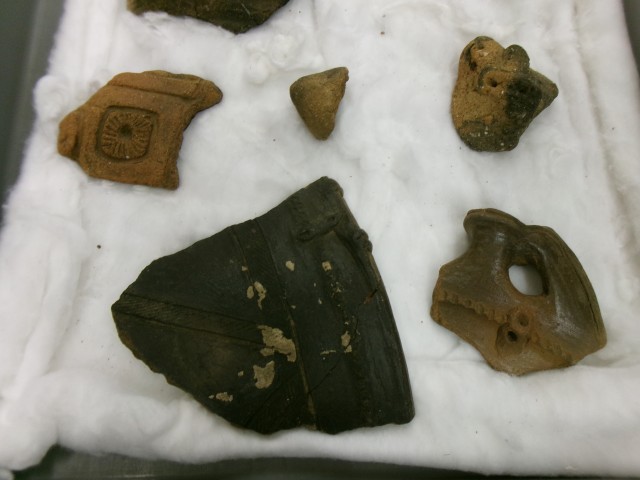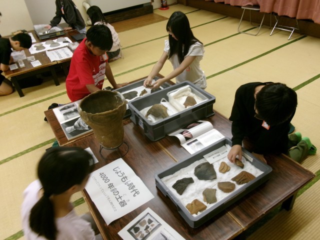 実際に土器を手に取って触ったり、タブレットを使って遺物の写真を撮ったりしながら、