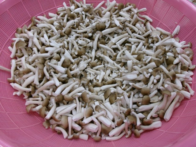 今日は一汁二菜の和食です。ししゃもは油で揚げてから南蛮漬けのたれを上からかけました。ししゃもは「焼き」よりも「揚げ」にすることで、子供たちも食べてくれます。「カリカリ油揚げのサラダ」は名前の通り、油揚げをオーブンでカリカリに焼いたものをゆで野菜の上に乗せました。食感の違うものを合わせると、かみ応えのあるサラダになります。また、今日の給食は板橋区の食育推進事業のひとつ「とれたて村給食」です。長野県駒ヶ根市産の新鮮で大きなしめじが届きました。しめじの風味が出るよう、汁物が出来上がる少し前に入れました。きのこ類は苦手な子も多いですが、今日のすまし汁はどのクラスもよく食べていました。