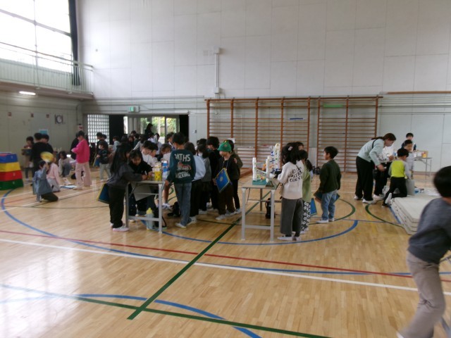 「おもちゃランド」では、2年生がお客さんとお店屋さんに分かれ、1年生と一緒にまわりました。作りたいおもちゃをグループごとに決めて、お互いに協力し合いながらおもちゃづくりに取り組みました。どうしたらおもちゃをパワーアップさせることができるのか、1年生に楽しんでもらえるのかをたくさん考えました。