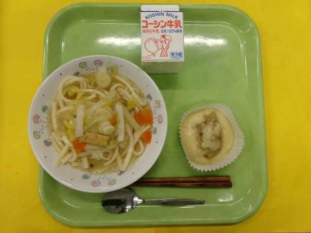 牛乳 あんかけうどん 肉まん風蒸しパン