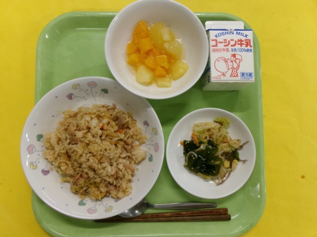 牛乳 キムチチャーハン 海藻サラダ フルーツポンチ
