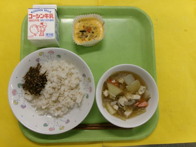 牛乳 ごはん 茎わかめのつくだ煮 千草焼き けんちん汁