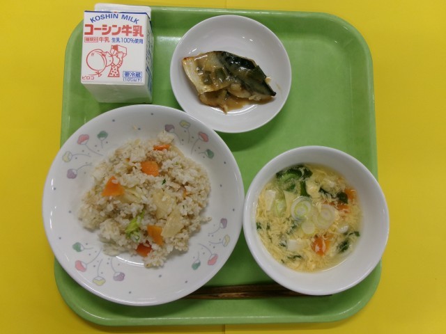牛乳 大根めし さばの板橋区産ねぎみそ焼き かきたま汁