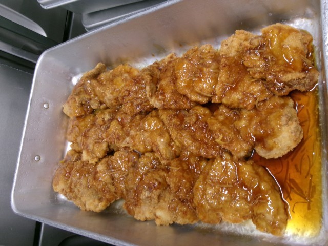 1月24日から30日までは「学校給食週間」です。学校給食の意義や役割の理解を深め、食に関する正しい知識と望ましい習慣の形成を目的としています。今週は郷土料理や世界の料理を献立に取り入れています。今日は新潟県の郷土料理です。「たれカツ」は、揚げたとんかつをソースではなく、甘辛い醤油だれにくぐらせて食べます。今日の給食では濃厚な味を出したくて、タレに赤ザラメを使用しました。生姜の千切りも入っています。のっぺい汁に入っている「車麩」は新潟県の特産品です。車輪のような形が特徴で、煮崩れしにくく、汁を吸うともちもちとした食感になります。給食では、見慣れない食材を使うことで、子供たちにも興味・関心を持ってもらいたいと考えています。