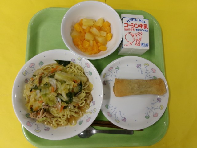 牛乳 しょうゆラーメン 春巻き ミックスフルーツ