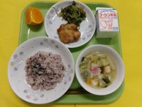 今日は人気メニュー「ミートソーススパゲティ」です。スパゲティの中では、一番人気があります。ミートーソースは、じっくりと時間をかけて煮込みました。仕上げに粉チーズを加えてコクを出しています。「マセドアンサラダ」の「マセドアン」とはフランス語で「さいの目切り」や「角切り」を意味します。今日の給食でも、じゃがいもや人参、きゅうりをさいの目切りにして、食べやすく見た目も美しく仕上げました。また、野菜だけでなく、大豆・青大豆・ロースハムが入り、栄養満点です。今日は人気メニューということもあり、全体的に残菜が少なかったです。