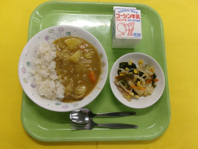 牛乳 カレーライス 海藻サラダ