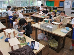 授業風景、その2です。4年生が展覧会の作品を作成しています。(校長)