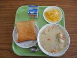今日から新年度の給食が始まりました。1年生も給食スタートです。