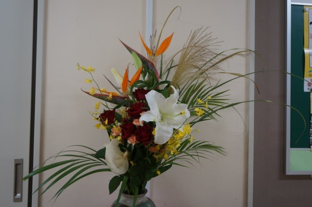 お花は、昇降口と校長室前に飾りました。メッセージ集は、これから読ませていただきます。