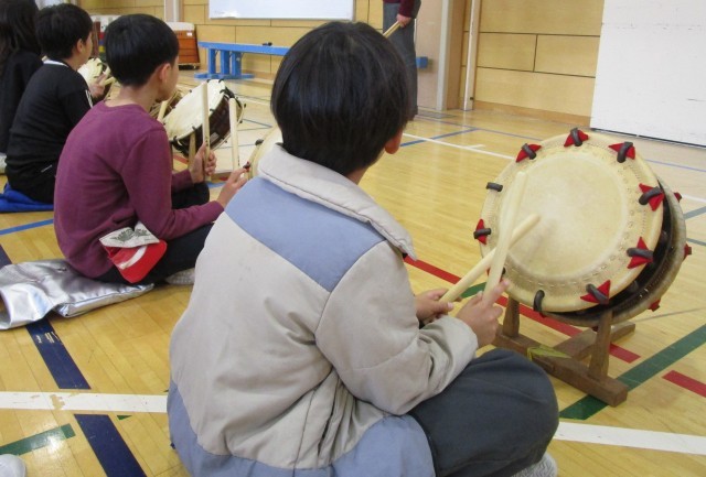 ゲストによる里神楽を鑑賞したり、舞(おどり)を教わったり、締め太鼓の演奏を体験したりすることができました。
