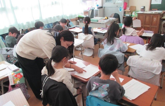 1/9 席書会 1年生 公開日 2026/01/09 更新日 2026/01/09 できごと 本日、席書会が実施されました。今日は、1年生、2年生、3年生、4年生が行いました。子供たちは、硬筆と毛筆それぞれにおいて、これまでの練習の成果を発揮しようと、一文字一文字に集中して取り組みました。新年の清々しい気持ちと静かな緊張感の中、真剣に書に向き合う姿が見られました。