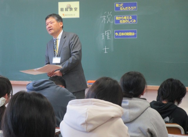 6年生の「租税教室」では、ゲストティーチャーとして東京税理士会の方々に来ていただきました。