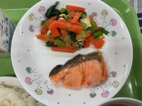 ⇒日本で初めての学校給食「おにぎり・塩鮭・漬物」を参考にしています。