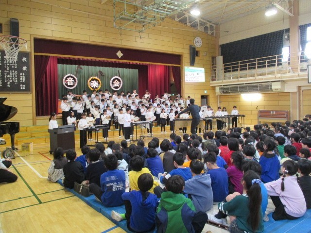2/13 音楽会 児童鑑賞日 その1 公開日 2026/02/13 更新日 2026/02/13 できごと 本日は、音楽会の児童鑑賞日でした。各学年の発表では、これまでの練習の成果が十分に発揮され、心を一つにした演奏や歌声が体育館いっぱいに広がりました。演奏の後には、会場から大きな拍手が送られ、温かな雰囲気に包まれていました。また、先生方による特別演奏では、子供たちが自然と口ずさむ姿が見られました。さまざまな音楽に触れることができ、子供たちにとって実りある時間となりました。