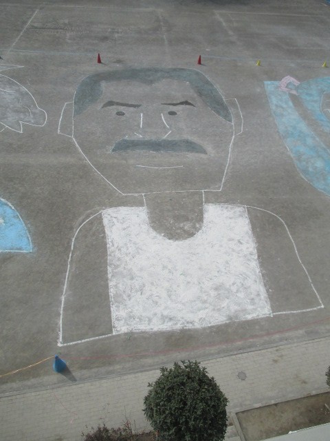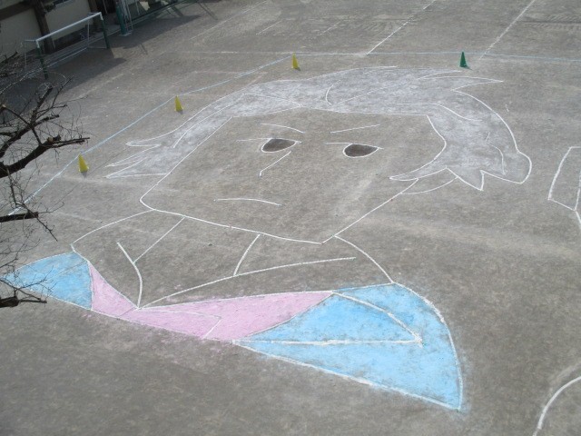 2/14 音楽会 6年生 校庭アート その1 公開日 2026/02/14 更新日 2026/02/14 できごと 6年生が、算数の学習で身に付けた図形や縮尺の考え方を活用して、校庭にアートを描きました。音楽会で演奏された曲に関わる三者の顔を題材に、広い校庭をキャンバスとして、位置や大きさのバランスを確かめながら、協力して仕上げました。上階から眺めると、その姿がはっきりと浮かび上がり、保護者の皆様や子供たちから、思わず歓声が上がりました。