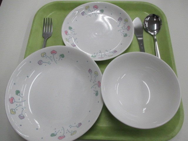 今年度は、18日の給食(ハンバーグ、ポタージュ、チョコチップパン)で、ナイフやフォーク、スープスプーンの使い方やパンのちぎり方などのテーブルマナーを学びます。
