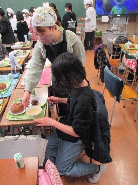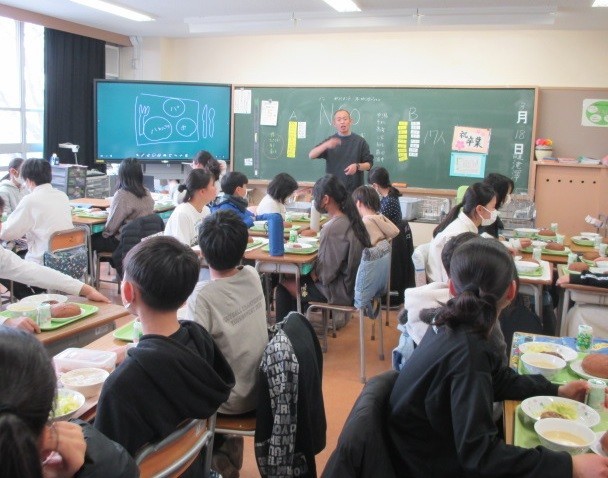 普段とは異なる給食の時間に、少し緊張しながらも、友達と教え合ったり、笑顔を見せたりしながら取り組む姿がありました。