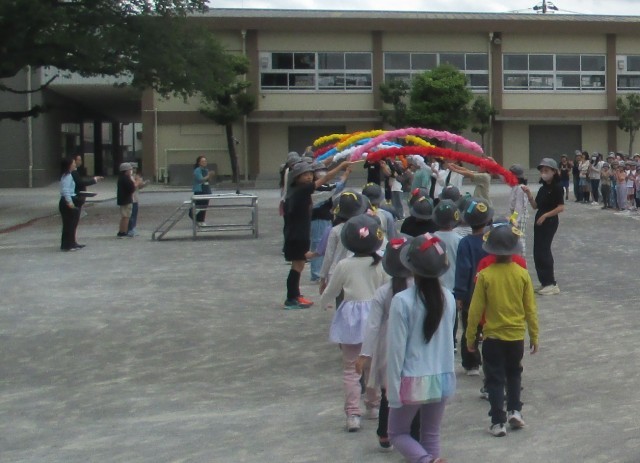 今日は校庭で、対面式がありました。