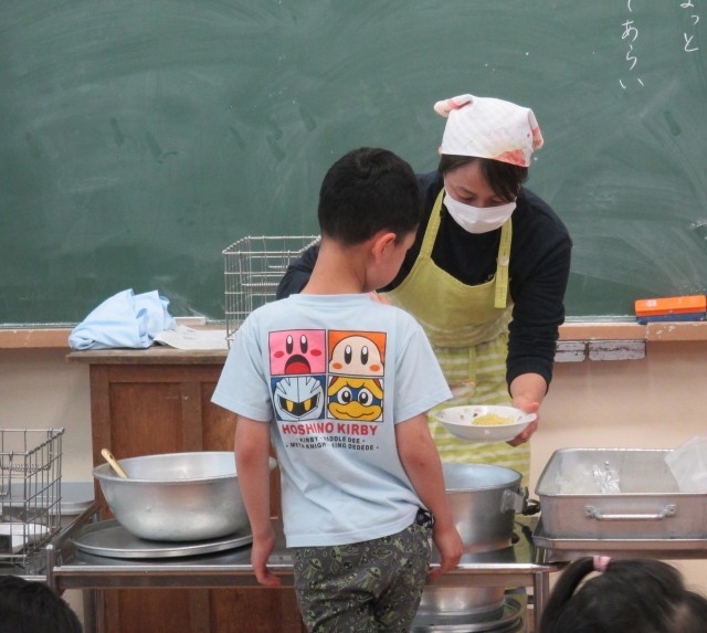 本日は2名の方が1年1組、2組に入ってくださり、配膳や見守り、おかわり、片付けの手伝いをしてくださっていました。