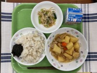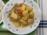 4月に入学した1年生もすっかり配膳が上手になりました。まだ少し大きい給食着を着て真剣に盛り付けをする姿はとても頼もしく感じます。少しでも盛り付けがしやすいよう、給食室では1,2年生の麺を一人分ずつ小分けにして提供しています。給食時間をなるべくゆっくり食べる時間に充ててもらえたら嬉しいです。