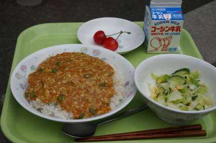 今日の給食 和風キーマカレー