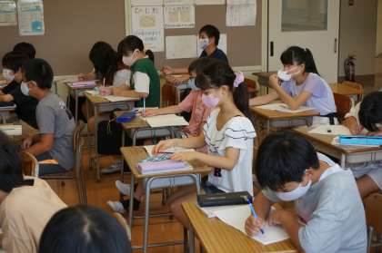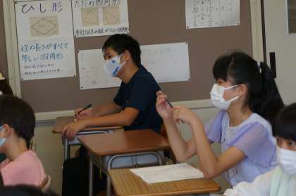 9/14 分数をかける計算を考えよう(6年算数) その1 公開日 2022/09/14 更新日 2022/09/14 できごと 6年生の算数は、「分数を使って長方形の面積を求めることはできるのか」を考えました。