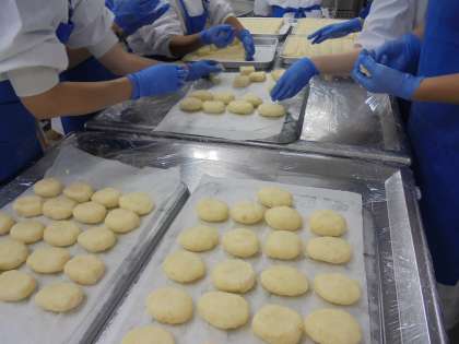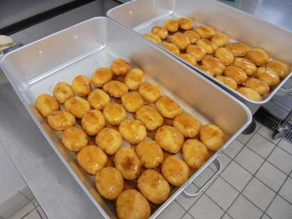 今日の給食では、50kgものじゃがいもを使いました。一つ一つ愛情を込めて作ったいももちは、大人にも子どもにも好評でした。簡単にできるので是非ご家庭でも作ってみてください。