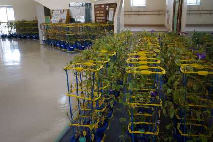 台風14号の接近に備えて、1年生はアサガオを校舎内に避難させました。