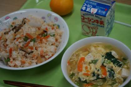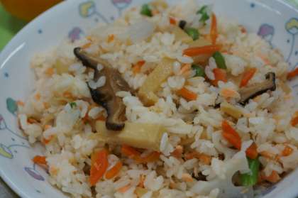 今日は【七五三行事食】です。あいにくの雨のため、屋内での撮影です。 鮭ちらし寿司