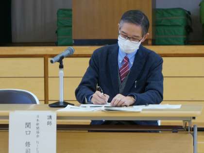 研究授業後の研究協議会では、日本新聞協会のNIEコーディネーター関口修司先生よりご指導していただきました。