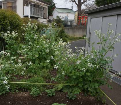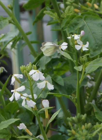 大根が満開! 大根の花にモンシロチョウが来ていました!