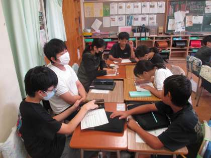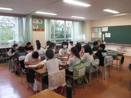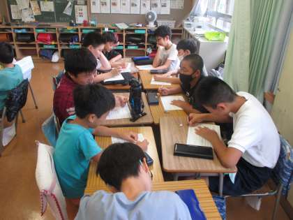 総合の学習では、「My townを盛り上げよう!」というテーマで、チームに分かれて、地域や学校にできることを考えています。