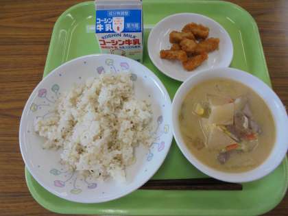 10月13日(火) 公開日 2020/10/13 更新日 2020/10/13 給食献立 《今日の献立》 ・牛乳 ・七穀ごはん ・いかのかりんとう揚げ ・豆乳仕立ての野菜汁 いかのかりんとう揚げは、小さくカットしたいかに片栗粉をまぶして揚げ、 砂糖、みりん、醤油、酒を混ぜたタレにからめて出来上がりです。 甘辛い味で、いかが苦手な子もよく食べていました。大人のおつまみにも♪