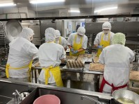 11/22 今日の給食2 公開日 2024/11/22 更新日 2024/11/22 給食献立 「ソイハンバーグ」 新メニューです。動物性のお肉は一切使っていません。 大豆ミートと豆腐をメインにタネを作りました。 「鶏肉とキャベツのスープ」