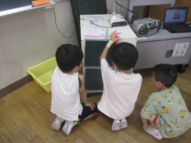 机の長さやロッカーの長さ、黒板の長さなどグループで考えながら取り組むことができました。