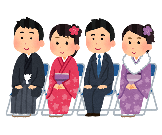 成人の人は、20歳の人たちをお祝いする会です。その会には100人以上の成人が集まっていました。