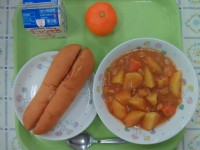 《今日の献立》 牛乳、ツナドッグ、ハンガリアンシチュー、みかん 《主な食材産...