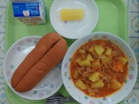 《今日の献立》 牛乳、黒砂糖パン、ポテトのミートグラタン、白インゲン豆のスー...